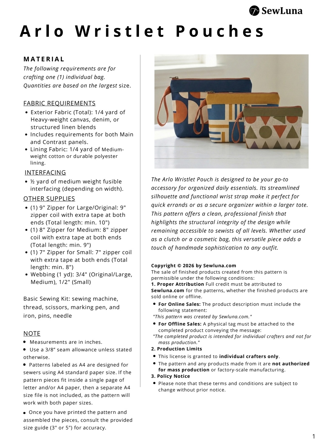 ready to start sewing? Click ‘Add to Cart’ to download your pattern and create your Arlo Wristlet Pouch today!