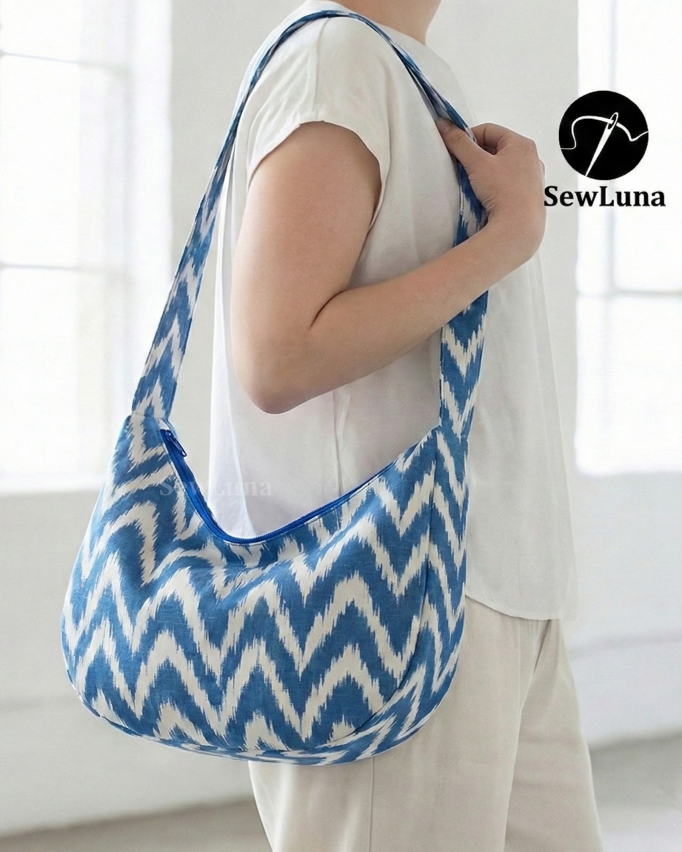 Why You’ll Love This Project: Designed with the beginner sewist in mind, this project bridges the gap between handmade and high-end. The ergonomic curved silhouette hugs your body naturally, while the integrated shoulder strap distributes weight evenly for all-day comfort. Whether you use a bold geometric print like the “Azure” or a solid canvas, the result is a timeless wardrobe staple you’ll be proud to say you made yourself.