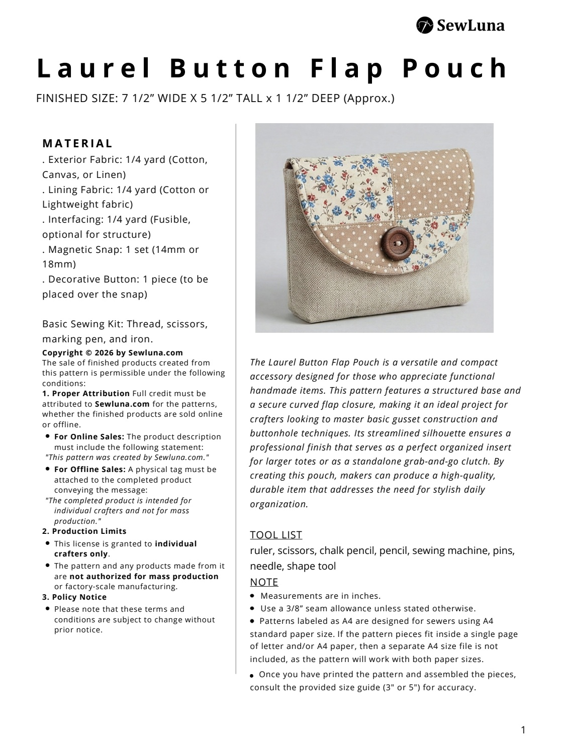 Be the first to review “Laurel Button Flap Pouch Sewing Pattern PDF | Small Clutch Purse Template”