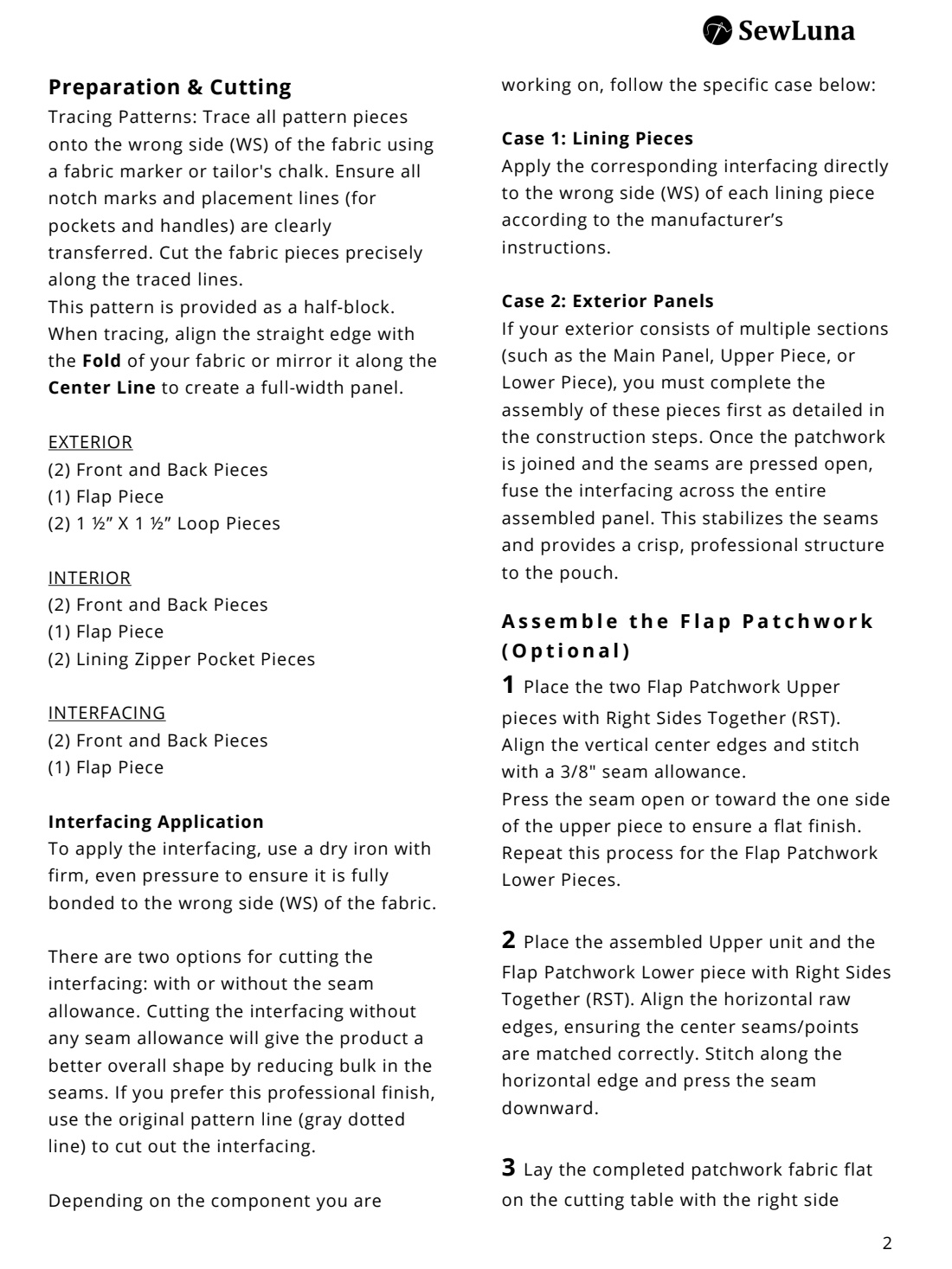 •    Interfacing: Medium-weight fusible fleece or woven interfacing for structure and durability.