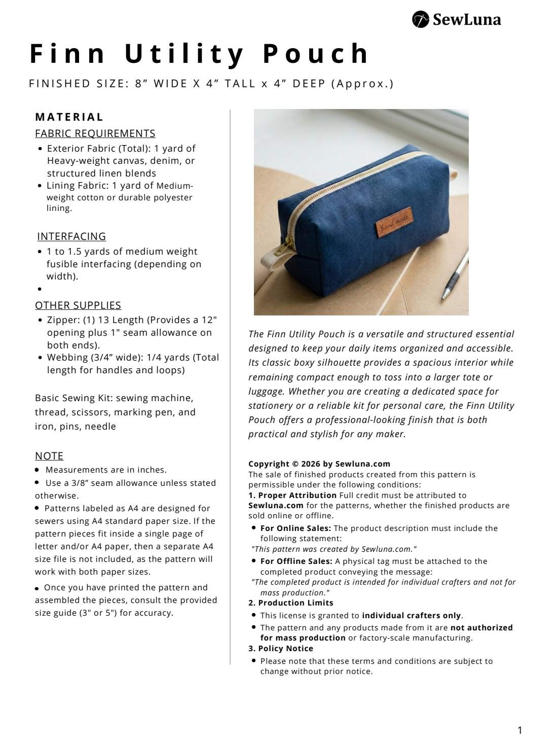ready to start sewing? Click ‘Add to Cart’ to download your pattern and create your Finn Utility Pouch today!