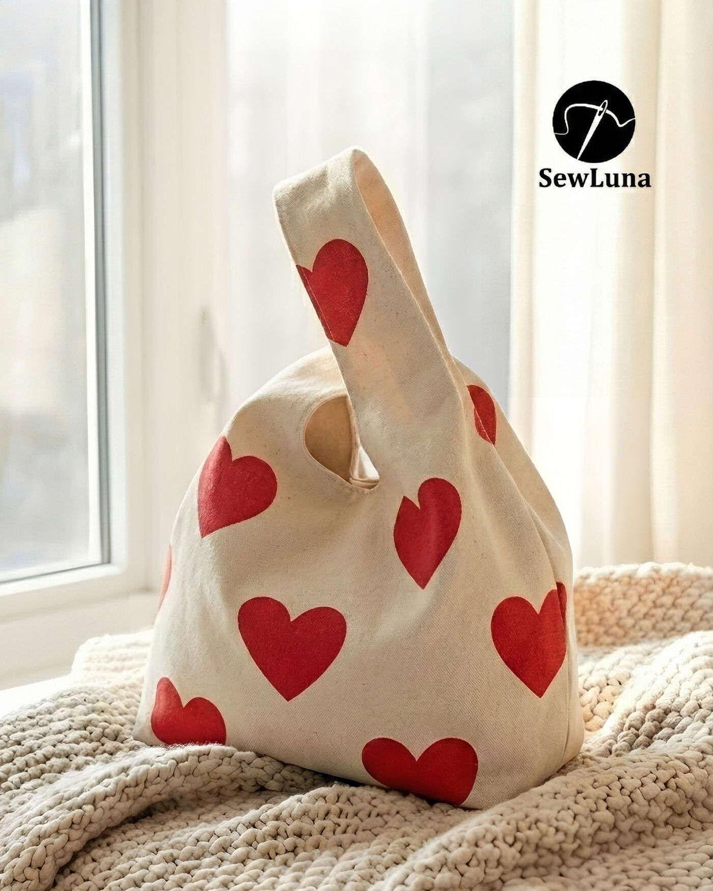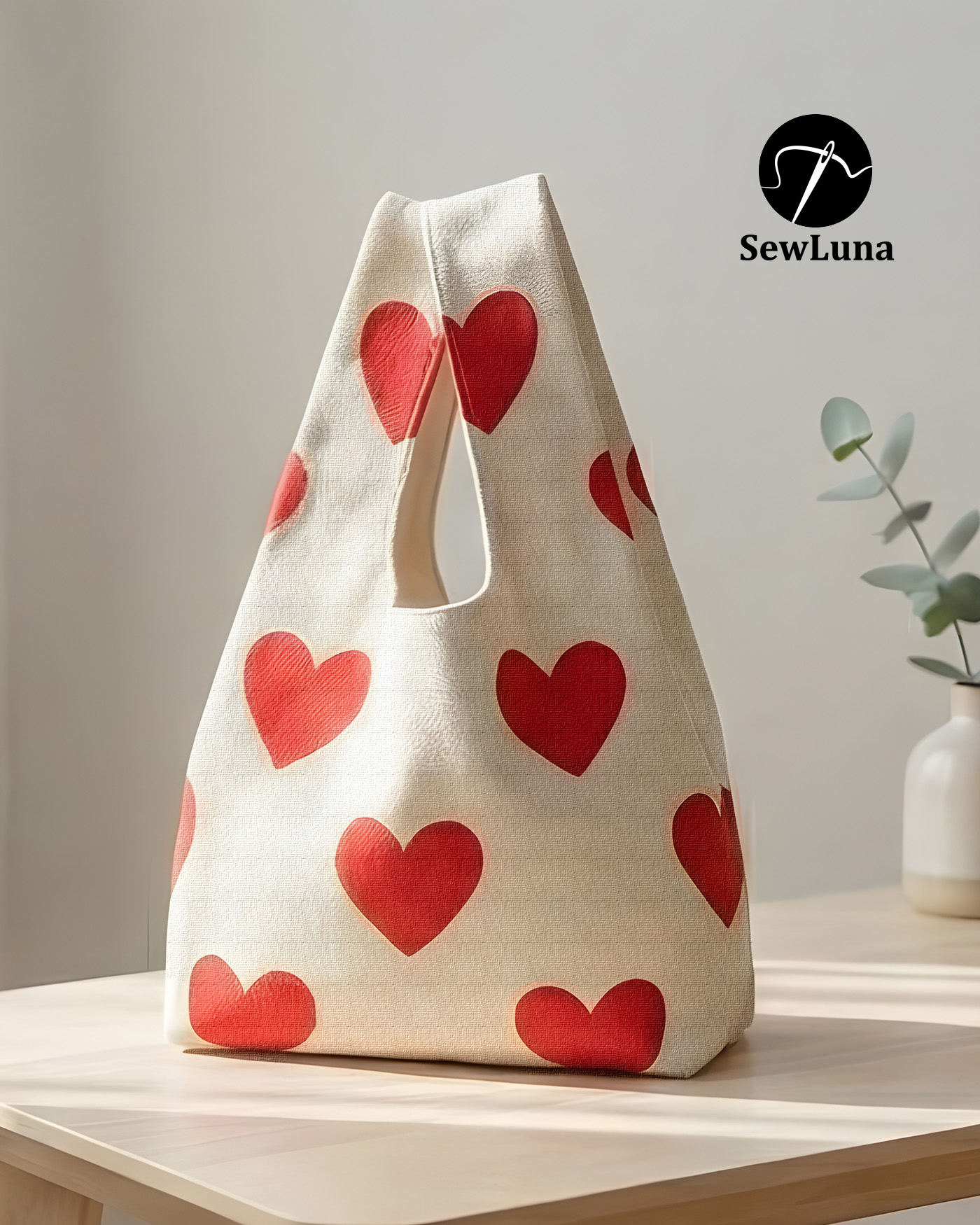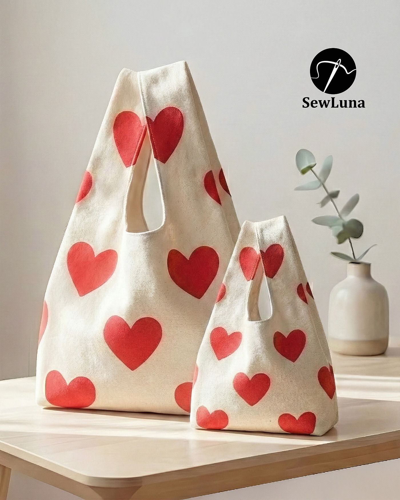 Heart Tote Bag Sewing Pattern PDF | 2 Sizes Reusable Market Bag | Japanese Style Knot Bag
