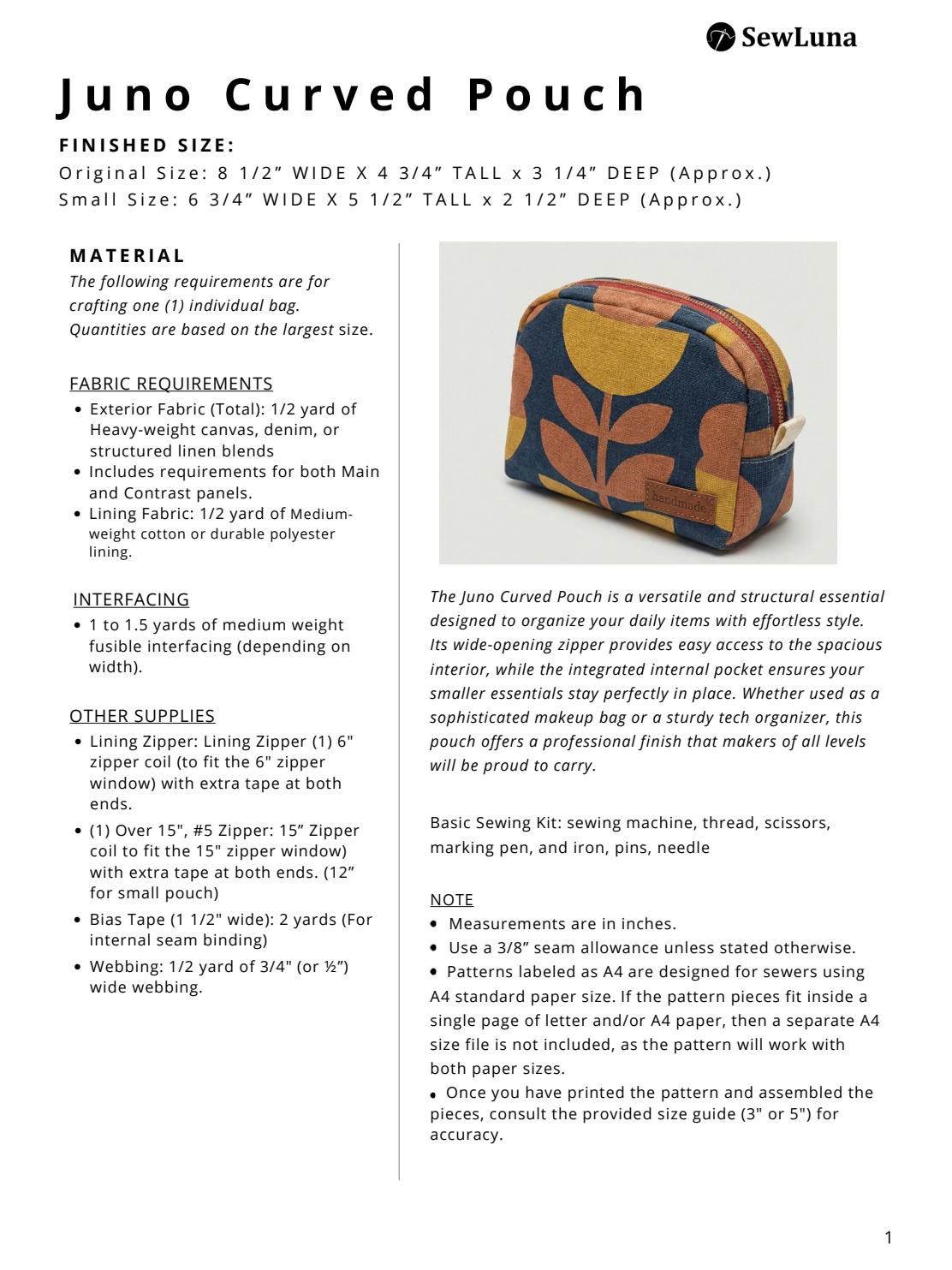 Start your sewing journey today! Click “Add to Cart” to download the Juno Curved Pouch and start creating.