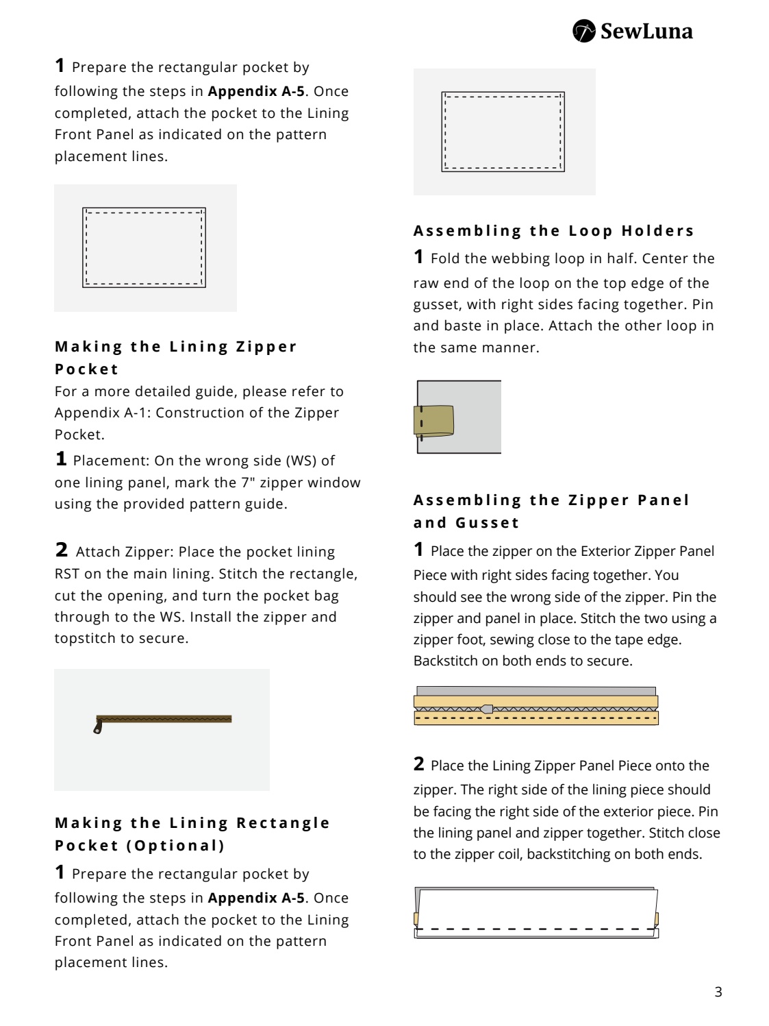 • Step-by-step sewing instructions with clear diagrams.