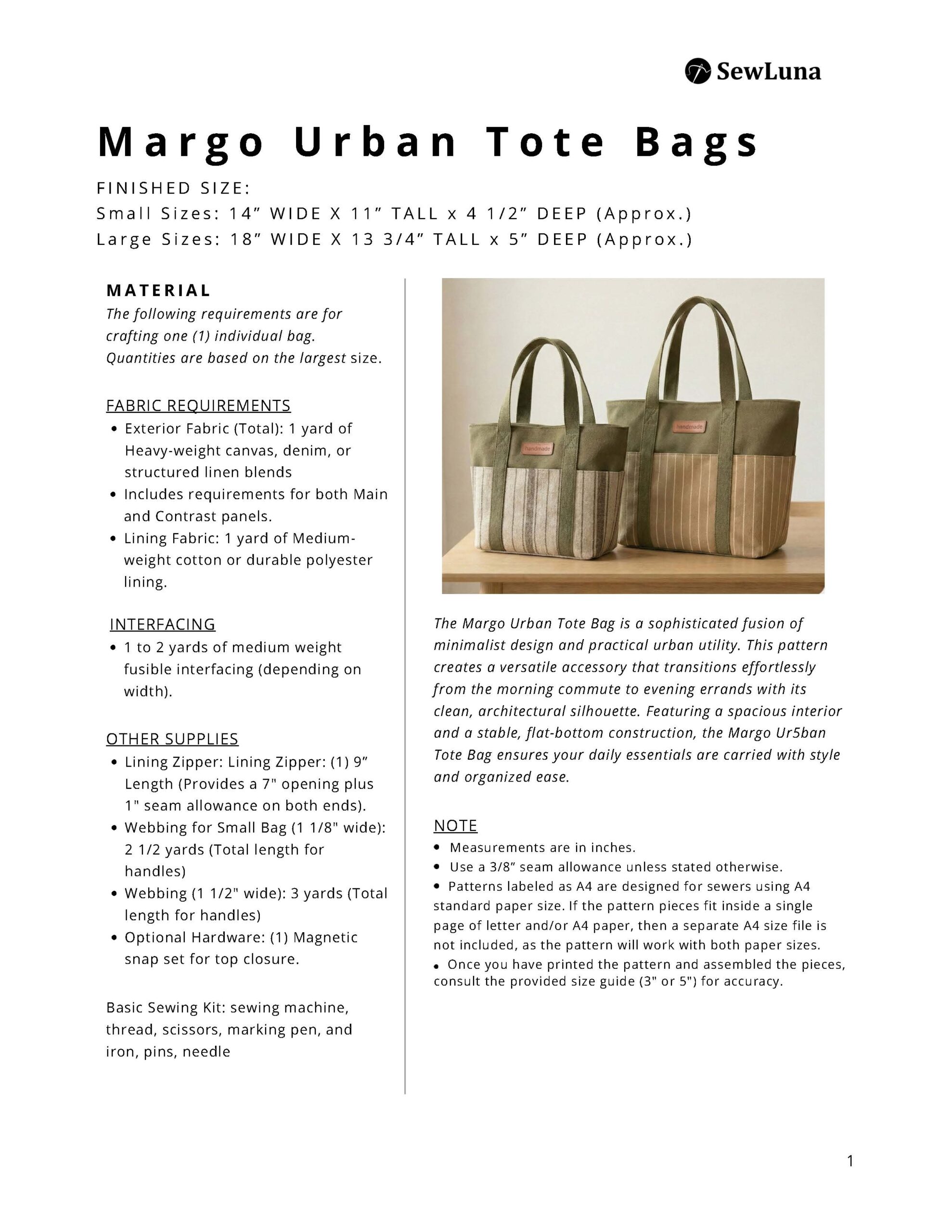 Are you looking for a sewing project that looks professional but is actually easy to make? Say hello to the Margo Urban Tote Bag Pattern. Whether you need a sturdy bag for your morning commute, a stylish market shopper, or a reliable carry-all for errands, this pattern delivers a clean, architectural silhouette that fits every lifestyle.