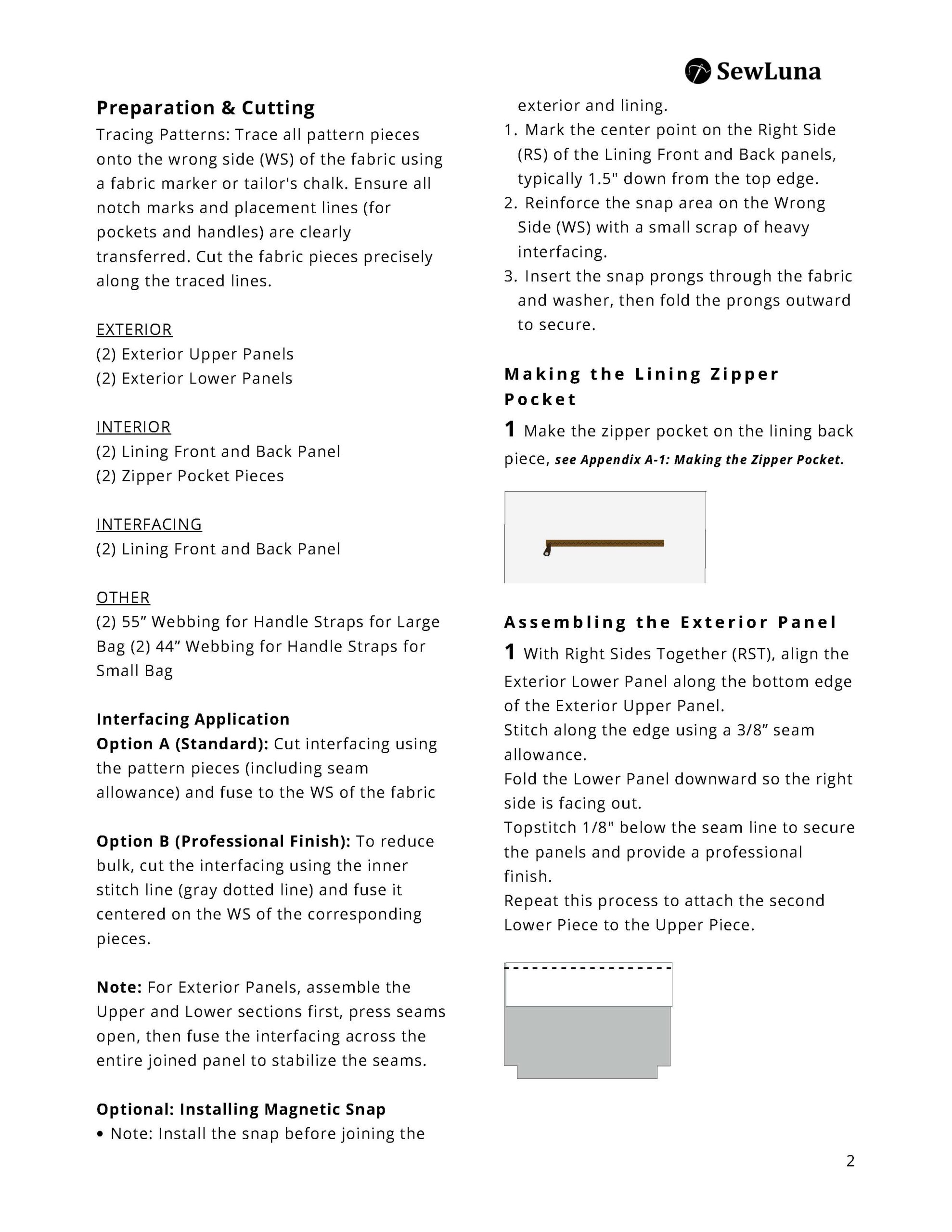 o Interfacing: Heavy-duty fusible interfacing to achieve a stand-up structure.