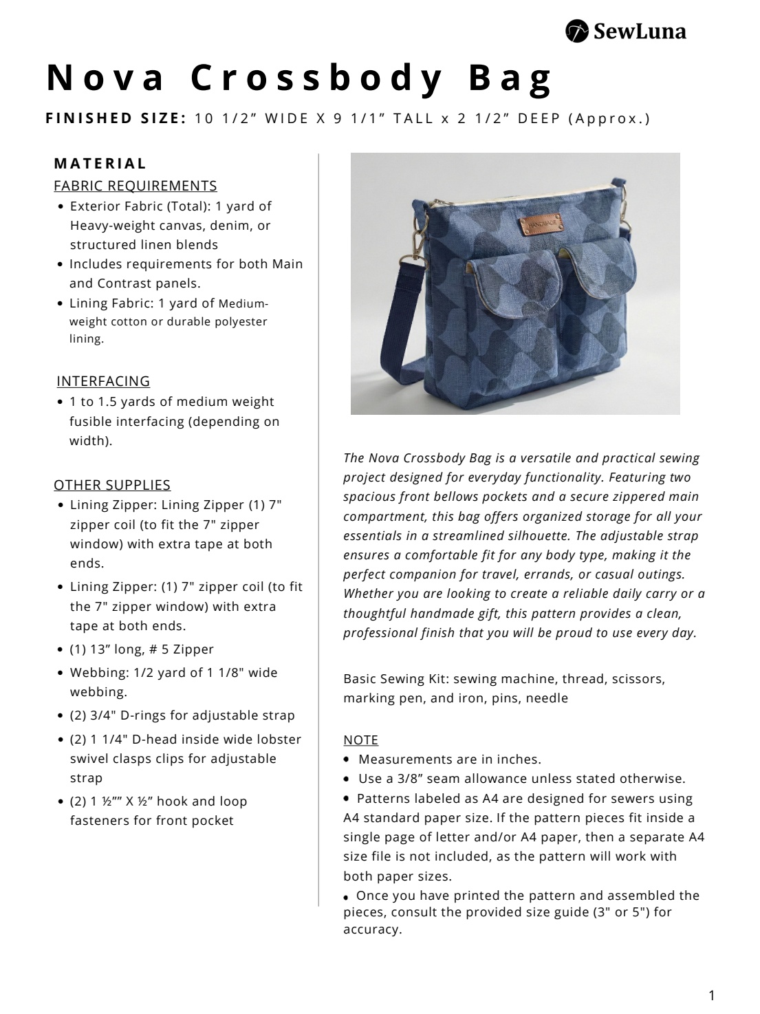 ready to start sewing? Click ‘Add to Cart’ to download your pattern and create your Nova Crossbody Bag today!