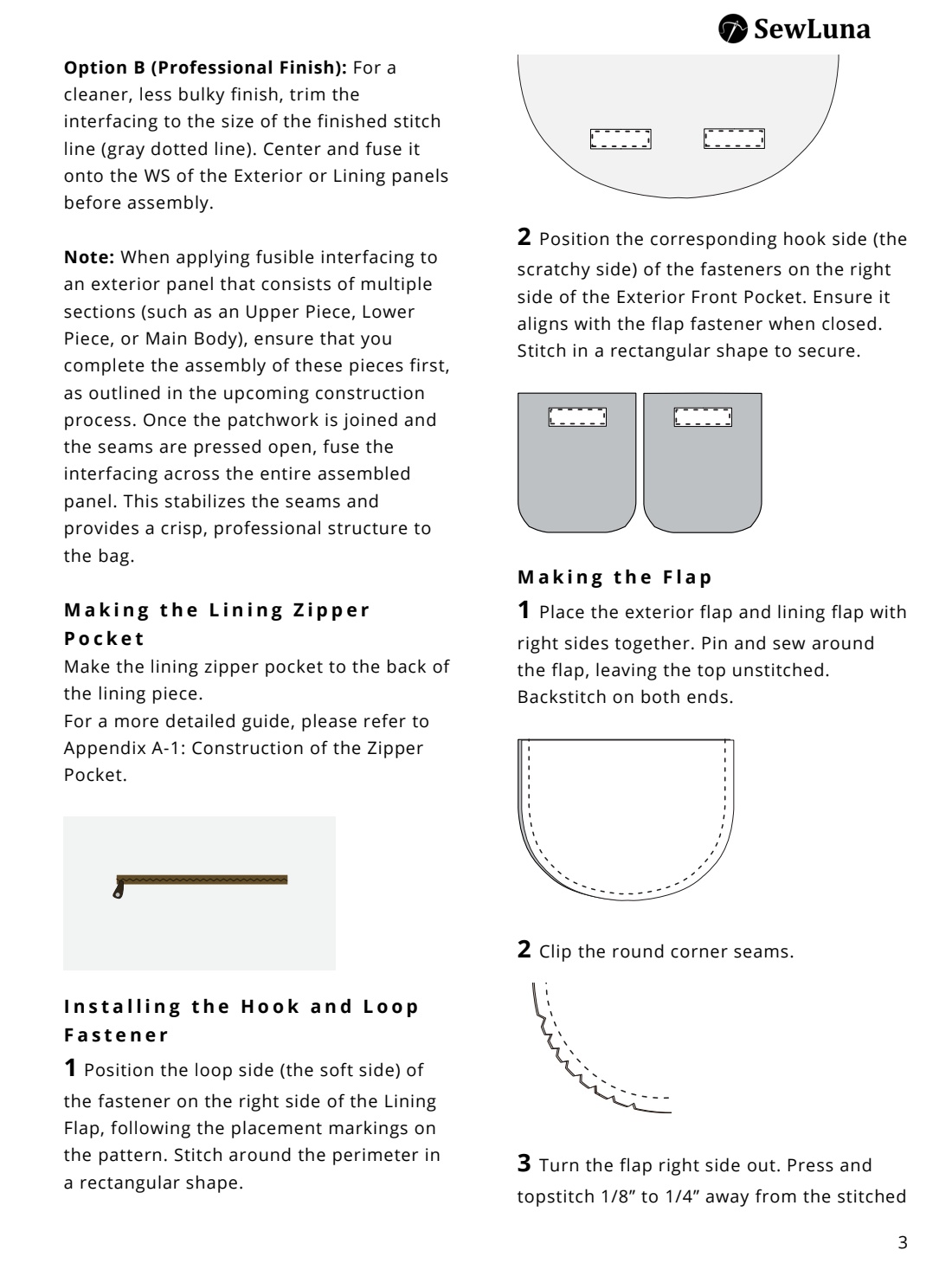 • Detailed sewing instructions with step-by-step diagrams.